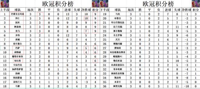积分榜方面,今天皇马小胜,拜仁大胜,两队都是追上了巴黎,国米和阿森纳,成为3轮过后保持全胜的5支球队,巴黎1个进球优势领跑,拜仁超过国米升至第2,皇马则是差阿森纳一个净胜球排在第5。利物浦在双线4连败后,今天终于是大胜止住颓势追上巴萨等队,利物浦1个净胜球的劣势排在巴萨之后位列第10,切尔西赢球后则是排在第12。